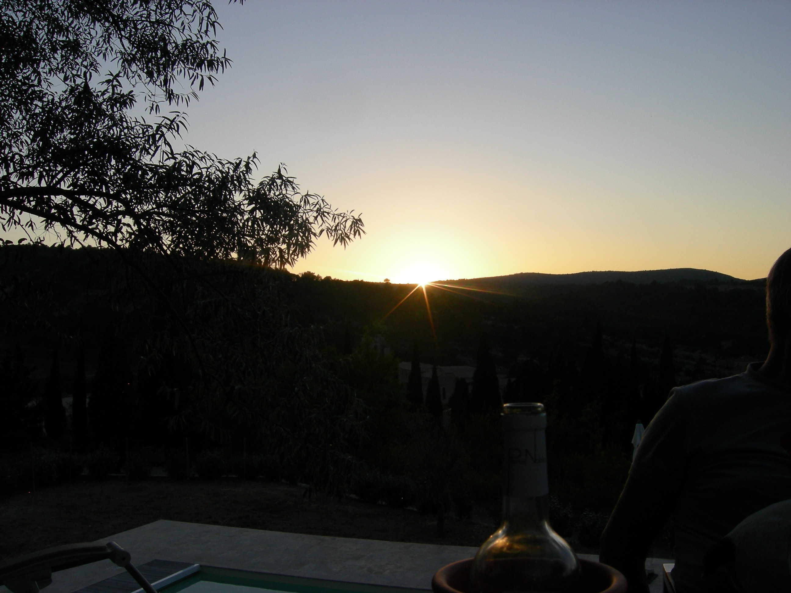De eerste keer op de Roc ben ik net op tijd om aan de andere kant van de col de zon romantisch op de tegenoverliggende heuvel te zien dagen, naast een eenzame elektriciteitsmast. Tergend traag werpt ze haar stralen in de vallei, tot die de 42 meter hoge toren van de abdij Sainte-Marie d’Orbieu vangen en dan snel het hele dorp in een gouden glorie kleuren.