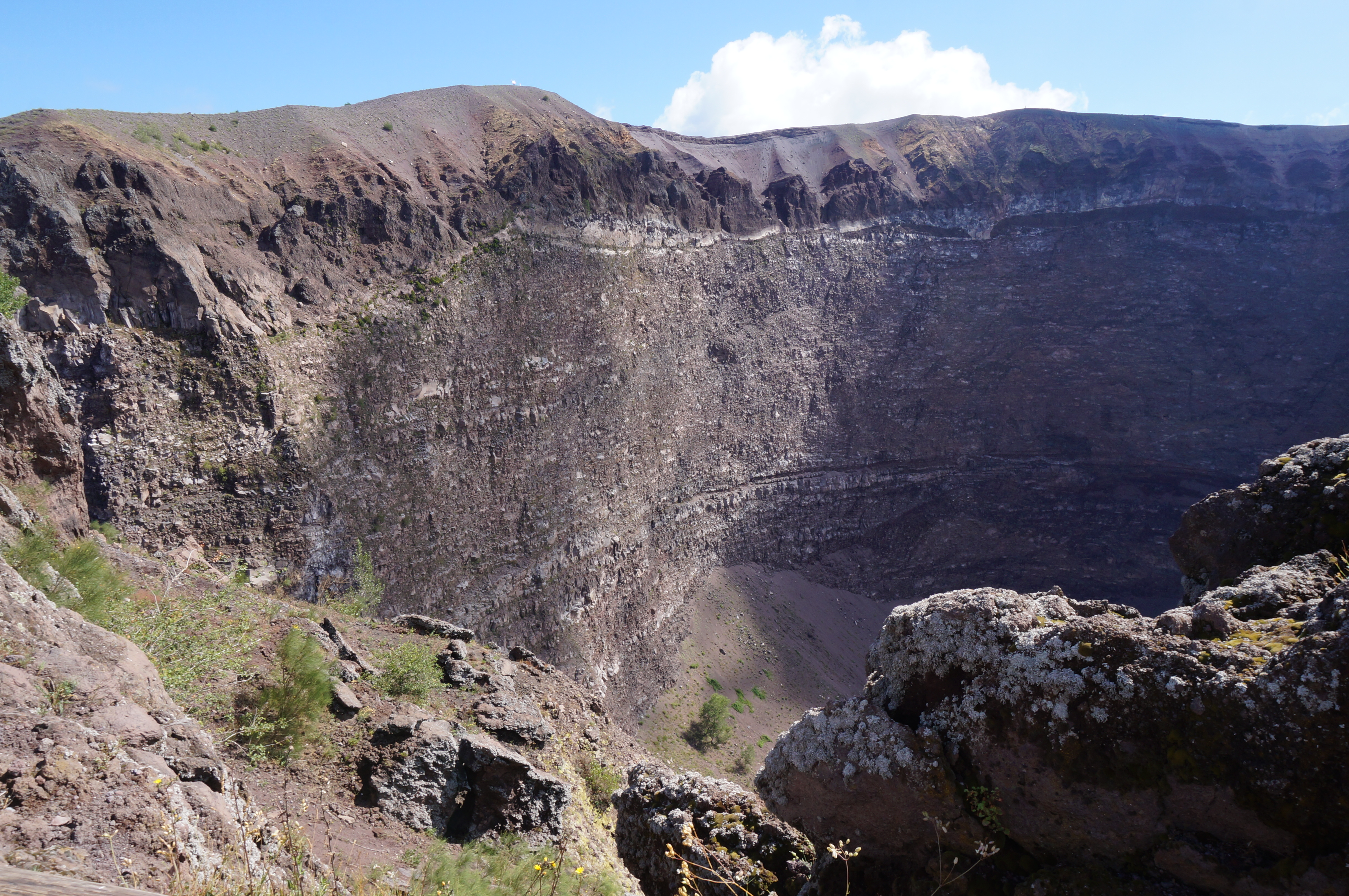 Boven geniet ik van het adembenemend uitzicht, zowel op de krater als op de Golf van Napels diep beneden. Halverwege op de terugweg passeer ik een zwetende Japanse met een gigantische camera rond haar hals. Het toestel zwiept wild heen en weer als ze door het zachte lavagruis naar boven ploegt. Ze heeft haar twee handen vol om haar rok hoog genoeg te houden om efficiënt te blijven zonder indecent te worden.