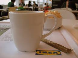Als we ons ontbijt zitten te verorberen komt het proper opgemaakte vrouwtje even poolshoogte nemen. ‘En wat vinden jullie ervan?’ ‘Lekkere koffie’, zeg ik en ik meen het: de koffie zit tussen de FBI-thermoskoffie en de Nespresso van op mijn werk. ‘Een schitterend initiatief van Ikea, toch?’ ‘Zeker en vast’, beaamt mijn vrouw die ervaring heeft met volwassenonderwijs aan mensen van rijpere leeftijd, ‘misschien doe ik hier wel een feestje voor mijn verjaardag!’ ‘Goed idee’, antwoordt de dame. En met haar hand op haar wang vertrouwt ze ons nog een geheim toe: ‘als je het op voorhand vraagt, kan je voor zo’n speciale gelegenheden bubbels bestellen.’ Ze knipoogt net niet, maar ze is geweldig in haar schik dat ze haar kennis als lid van de Ikea ontbijtclub met ons kan delen.