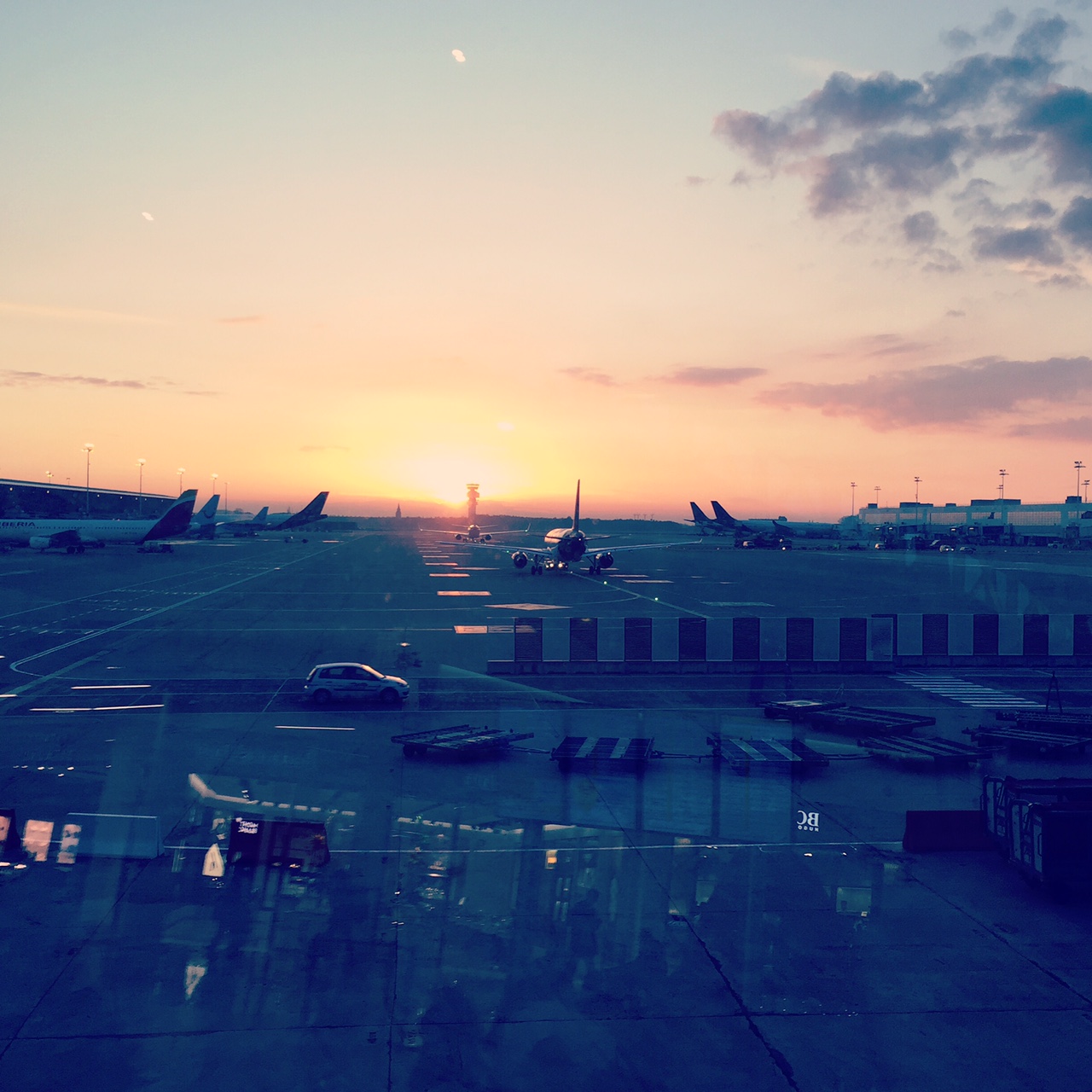 het vliegtuig zal opstijgen. De vlucht is om 8:20 u. Onze boarding pas zegt dat de gate sluit om 7:50 u. De tabellen met de geplande vluchten zeggen dat het nummer van de gate voor onze vlucht bekend wordt gemaakt om 7:35 u. Waarom zo krap voor het sluiten van de gate, vraag ik me af. Voor sommige gates geven de tabellen tien minuten wandelen aan. Daar word ik zenuwachtig van. Waarom kan men dat gatenummer niet vroeger bekend maken?