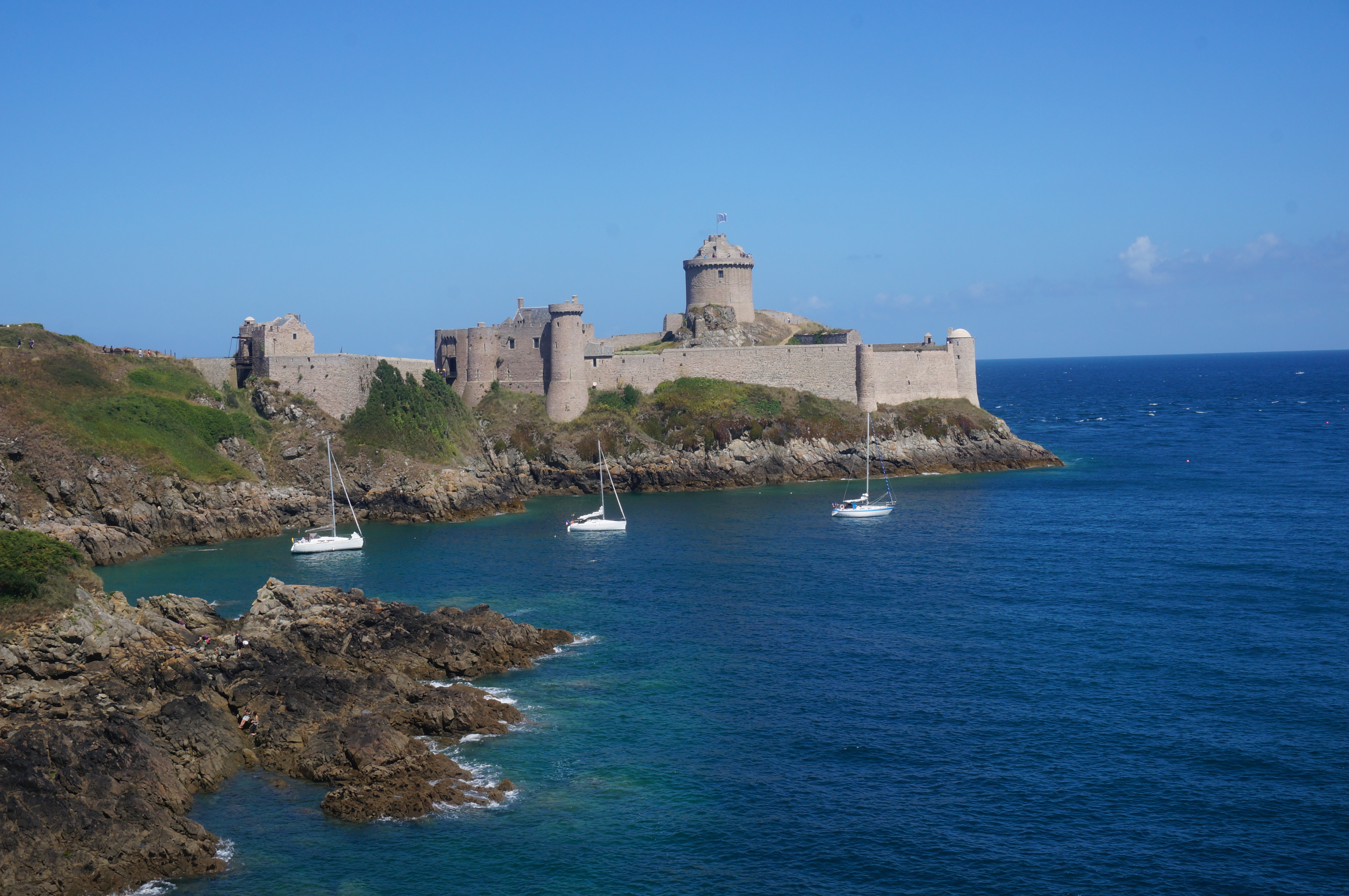 Het Fort op de punt van een rots in zee, bereikbaar over twee ophaalbruggen, kan je bezoeken voor 5 euro. Het dateert uit de veertiende eeuw en werd in de 17de eeuw verbouwd, zonder zijn middeleeuws aura te verliezen. In de honderdjarige oorlog tussen Frankrijk en Engeland, wisselde het kasteel na belegeringen enkele keren van kamp. De vesting spreekt ook tot de verbeelding van cineasten. Hoewel de burcht ten tijde van de Noormannen nog niet bestond, diende ze bijvoorbeeld als decor voor de film The Vikings uit 1958, met o.a. Kirk Douglas, Tony Curtis en Janet Leigh.