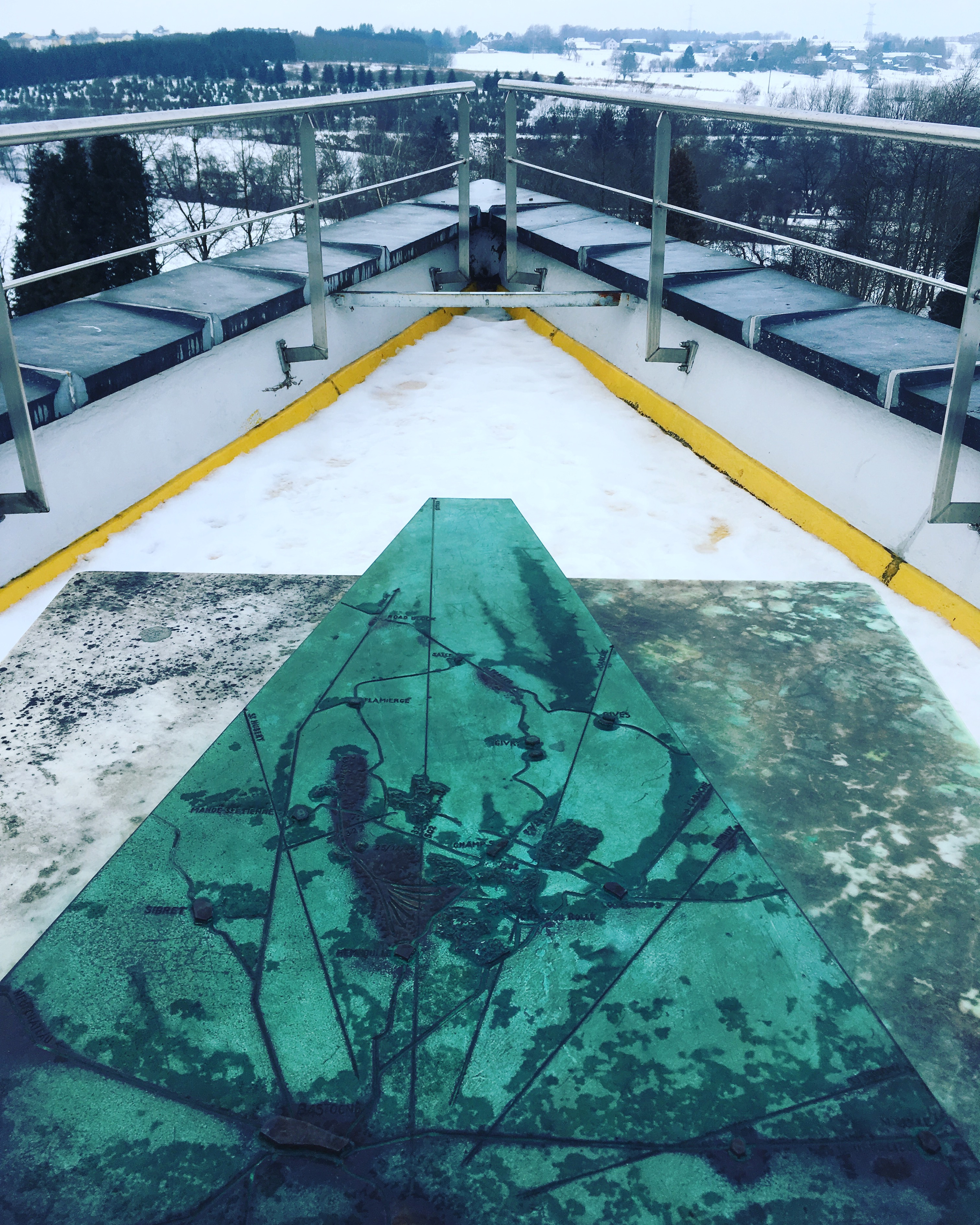 het grote museum in Bastogne, kijk ik in alle richtingen uit over het slagveld. Hoewel er sneeuw ligt en het museum gesloten is in de winter, tracht deze plaats een warm en behaaglijk gevoel van samenhorigheid te geven over de weg die Europa en Amerika na deze vreselijke episode hebben afgelegd.