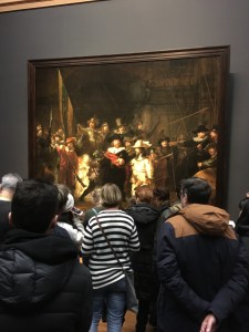 het Mauritshuis in Den Haag. Dan maar aanschuiven voor de Nachtwacht, volgens het Rijksmuseum en miljoenen Nederlanders een van ’s werelds beroemdste schilderijen. Al is die reputatie ervan niet altijd zo onkreukbaar geweest. In 1715 werd het overgebracht naar het stadhuis op de Dam, maar daar paste het niet op de gereserveerde plaats. Dus werd er maar een stuk van afgesneden. Overigens, leert de Grijze Man die memorabele dag in Amsterdam, heet dit wereldvermaarde schilderij uit 1642 eigenlijk “De compagnie van kapitein Frans Banninck Cocq en luitenant Willem van Ruytenburgh maakt zich gereed om uit te marcheren”. De bijnaam “De Nachtwacht” duikt pas in een geschreven gedaante op in 1797.