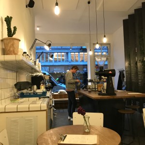 Tien minuutjes te laat openen de twee personeelsleden van koffiebar MOK in de Dansaertstraat hun zaak. Achteraan zoek ik een plaatsje en begin te lezen met mijn groene boekje en gsm bij de hand. De jonge barista vraagt me nog even geduld voor mijn bestelling van een coffee of the day.