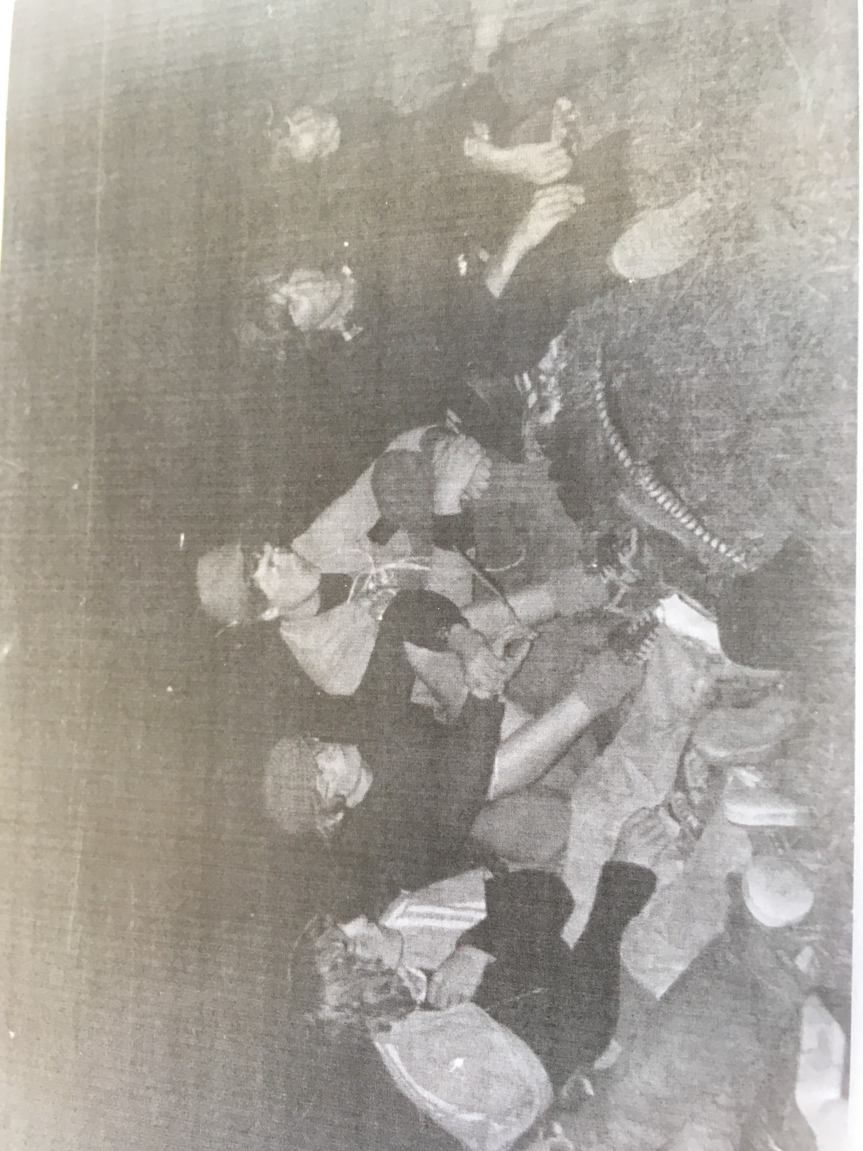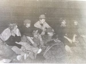 Bij nader toezien hadden we allemaal veel langer haar dan vandaag bij jongens van zestien de mode is. De Fred en de Krikke hadden een deken om de schouders geslagen. Aan de Semois kan het laat op de avond ook in de zomer koud zijn. Het kampvuur geeft gelukkig voldoende warmte, maar niet op de rug. Er vindt een ernstig gesprek plaats, daar rond het vuur. We waren eerstejaars verkenners en we bespraken totemnamen. Philippe kreeg een mooie, Onstuimige Leeuw.
