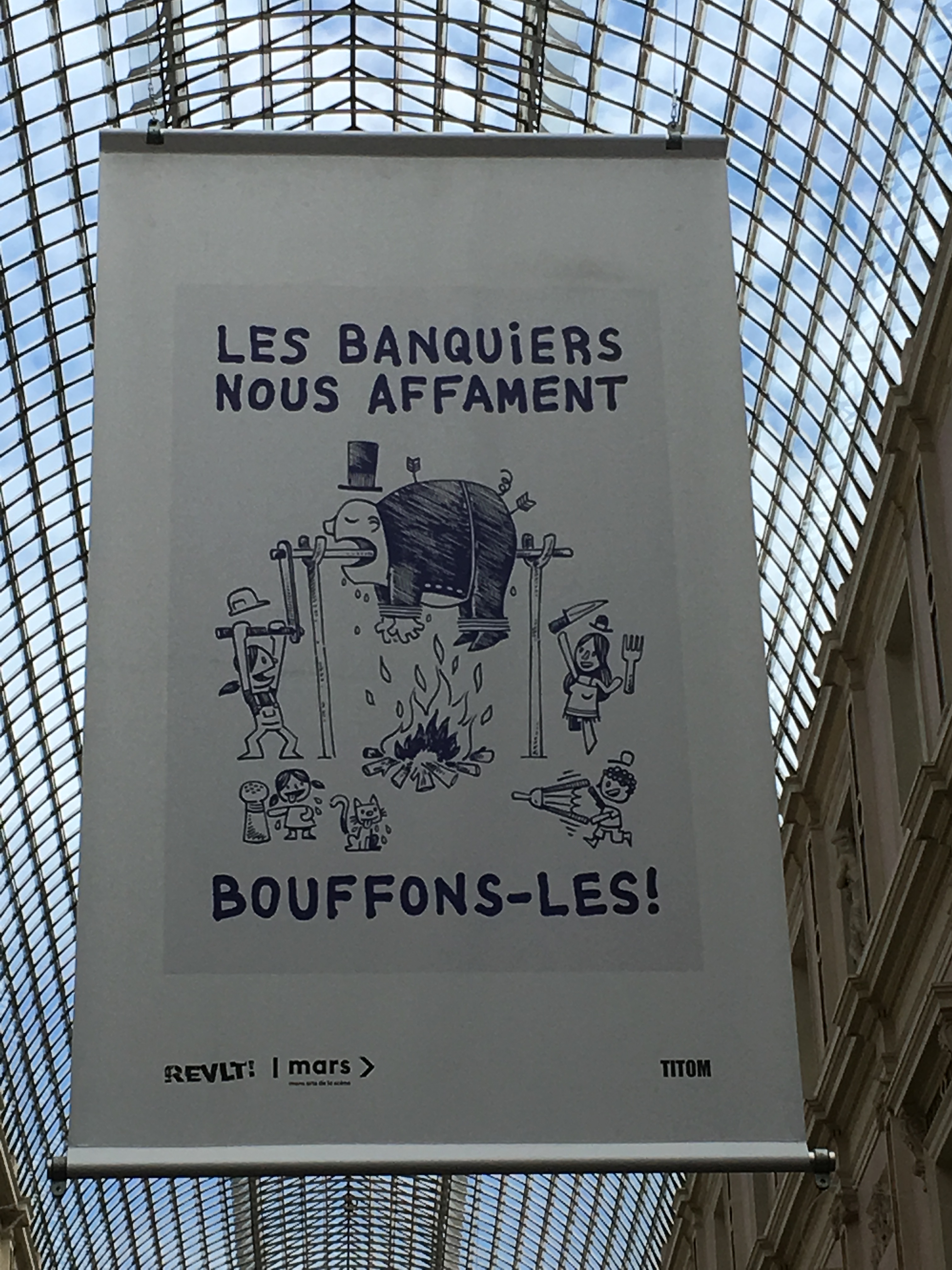 In de Sint-Hubertusgalerij hangen grote affiches op van REVLT, wat staat voor Revolt, een tijdelijke tentoonstelling in de Vanderborght-building, met Brusselse kunstenaars die de wereld een geweten willen schoppen. Op de achterkant staan afbeeldingen uit de belle époque. De spandoeken nemen de Grijze Man mee terug naar een gesprek van twee dagen geleden met Ann. Toen Raf nog leefde, was ze de vriendin van zijn veel te jong overleden vriend, een autodidact die hem zijn leven lang dierbaar zal blijven. Bijvoorbeeld omdat hij de Grijze Man in de jaren tachtig de weg wees naar Vargas Llosa, Saramago, Coetzee en andere geliefde schrijvers.