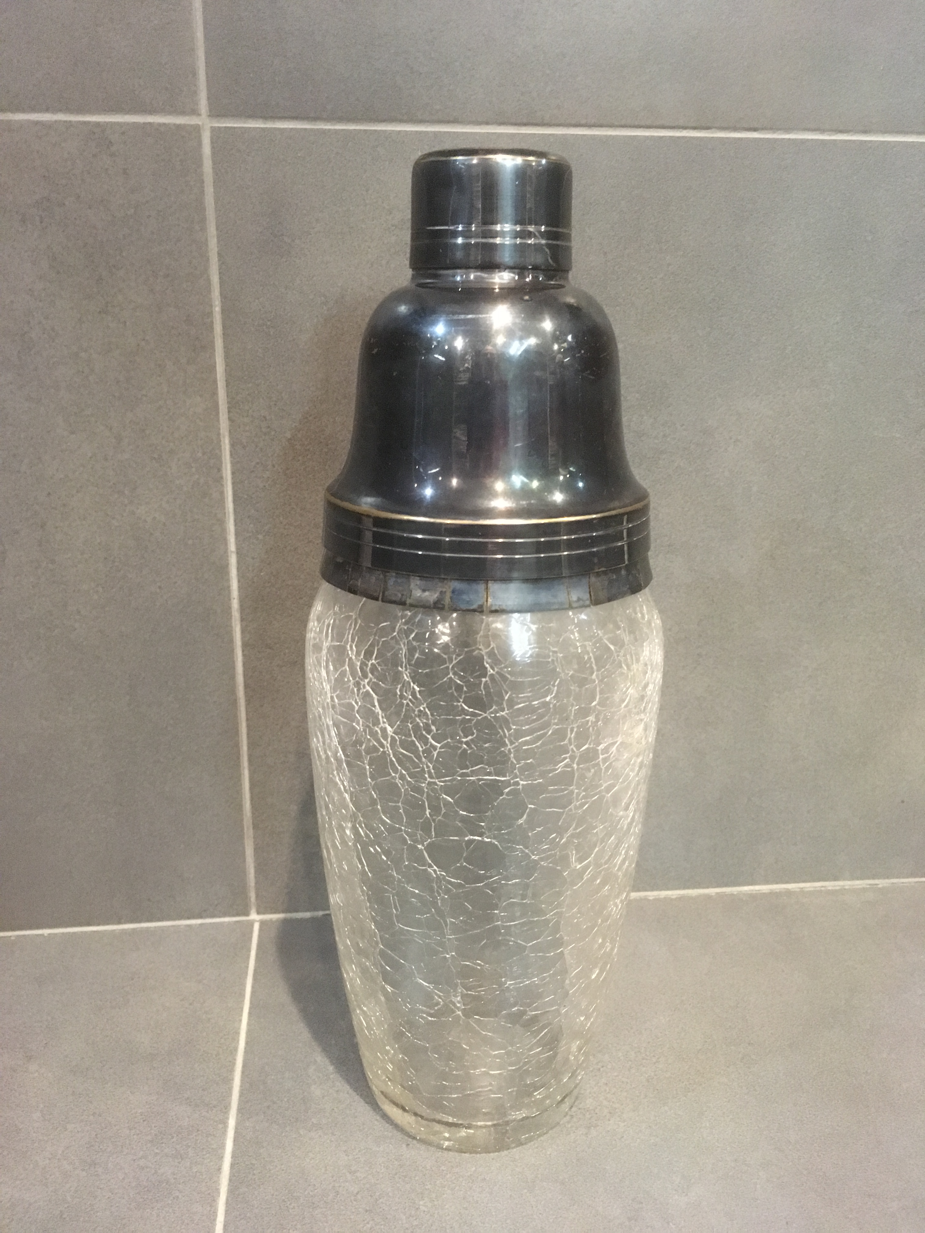 erg fraai exemplaar in gecraqueleerd glas met sluitingen die zo smachten naar zilverpoets als de wing op mijn rode muts. In mijn herinnering stond het voorwerp mooi gepositioneerd in de oude vitrinekast die al decennia uit de ouderlijke woonkamer is verdwenen. En zonder vitrine was ook de shaker ergens onzichtbaar weg gestopt.