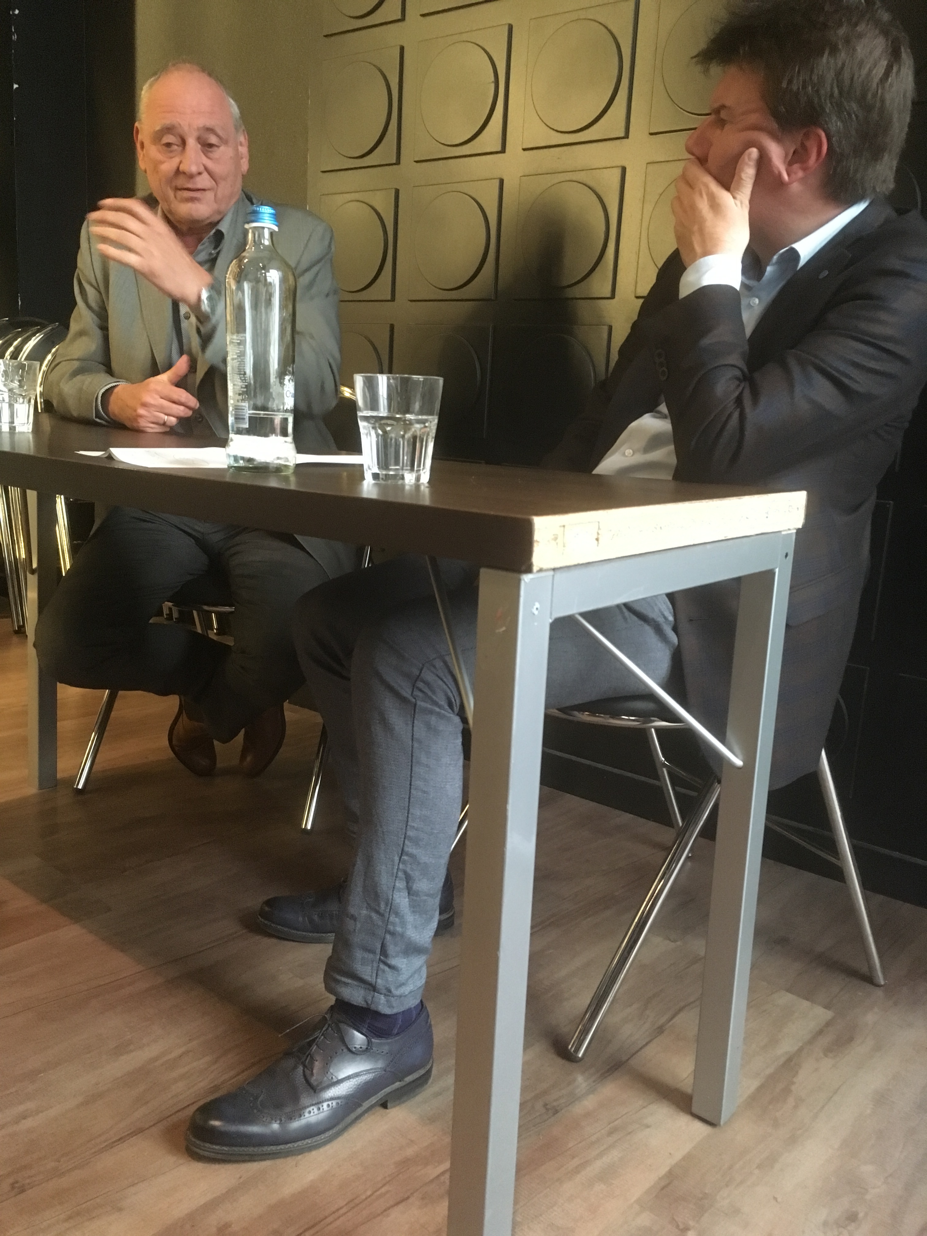 Bij de toehoorders bevonden zich ook de Grijze Man, zijn baas en twee collega’s. De baas was er omdat de auteur hem gevraagd had of hij hem wilde inleiden. De collega’s omdat ze belangstelling hadden voor de links-liberale inzichten.