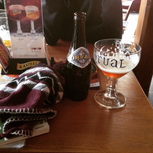 In het enige café van Herbeumont dat open is, drinkt hij nog een Orval vooraleer node
