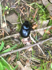 Van aan de ruïne vindt hij probleemloos de merktekens van de Rando Trail no 1, Bois de Conques. Het is een gemakkelijke trail, slechts 11 kilometer lang en met weinig hoogteverschillen. Gelukkig maar, want de Grijze Man voelt de tocht al in zijn benen. Op de trail neemt hij even de tijd om die zwarte kevers van naderbij te bestuderen. Ze zijn een halve centimeter groot en glanzen in een mooi blauwzwart. Maar ze moeten vrij dom zijn want ze vertonen geen vluchtreflex als de Grijze Man hen met de punt van zijn wandelstok port. Als ze op hun rug terechtkomen, spartelen ze zich wel snel terug op hun pootjes. En blijven dan weer stil zitten. Misschien hebben ze buiten de mens wel geen natuurlijke vijanden.