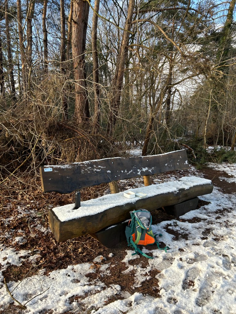De Grijze Man belandt van de Mutaradreef zomaar in de Kruisheide, een klein maar fijn natuurgebiedje van 5 hectare bos en heide, in beheer door Natuurpunt. In dit natuurgebiedje loopt geen enkel pad onder water dankzij de zanderige heidegrond. De Grijze Man spot er een bank, spijtig genoeg nog bedekt met sneeuw. Hij eet er zijn boterhammetjes op en drinkt er een heet theetje uit zijn thermos, staande aan de besneeuwde bank. Vinken en mezen houden hem goed in de gaten. Een Vlaamse gaai waarschuwt de vogels uit de omgeving voor de indringer.