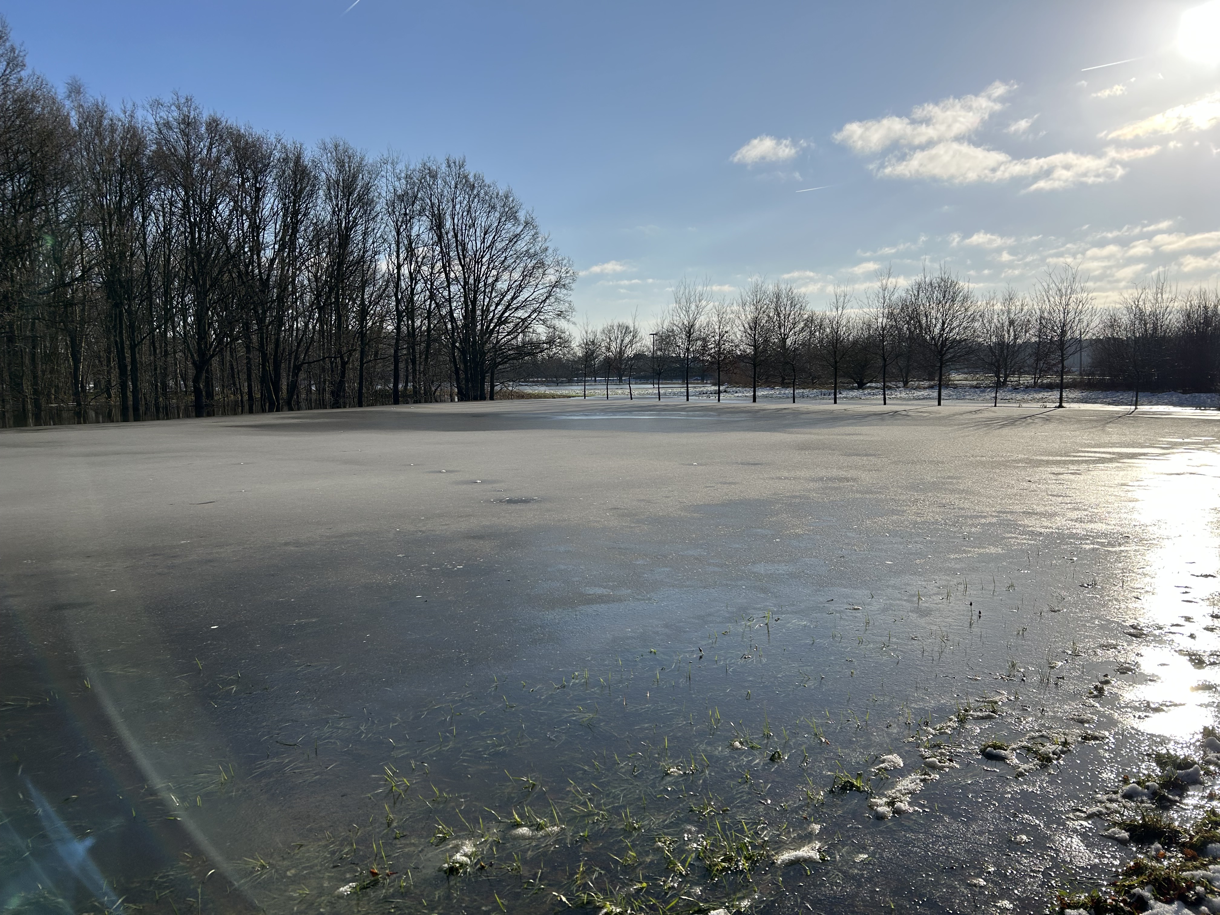 Terug op de asfaltbaan van Puttekomheide stampt hij de modder van zijn wandelschoenen. Na een kleine kilometer ziet hij al van ver de paal van wandelknooppunt 504 staan. Na een warm stortbad krijgt hij alleen nog met moeite en pijn zijn linkerknie geplooid. Gelukkig is ’s anderendaags de pijn weer vergeten.
