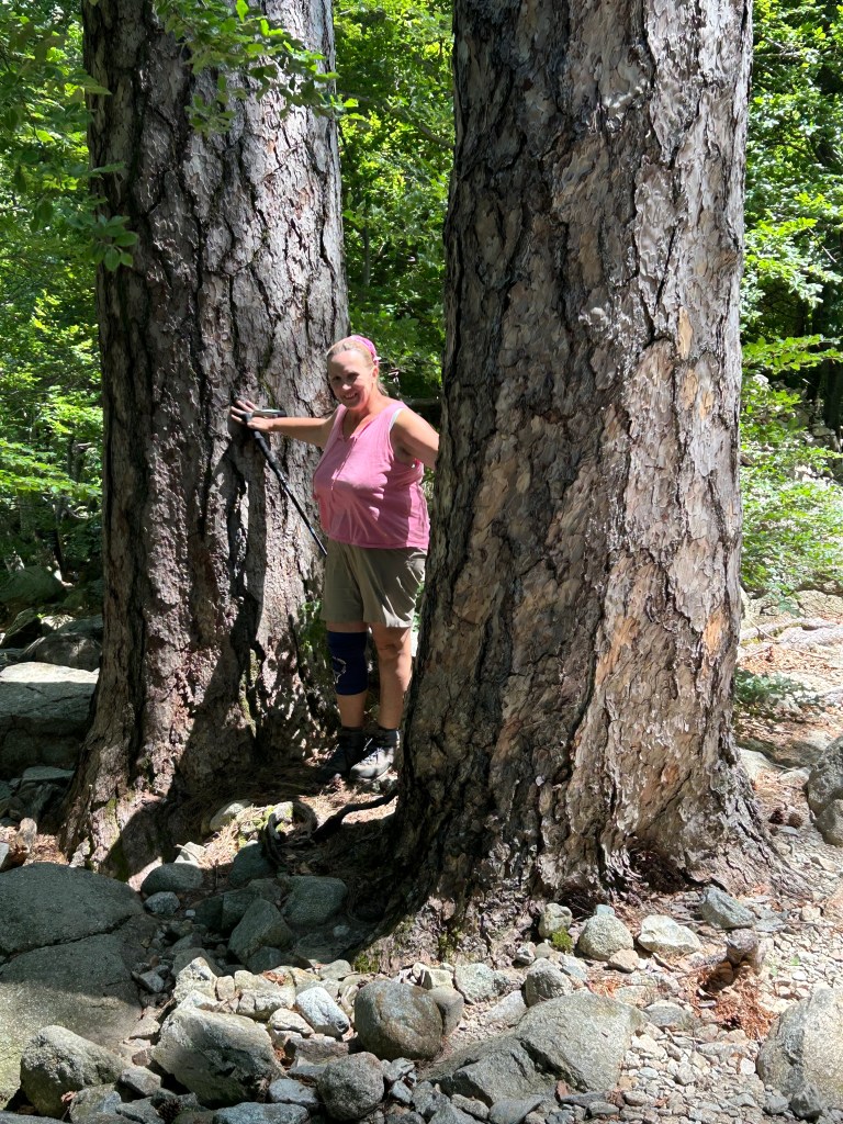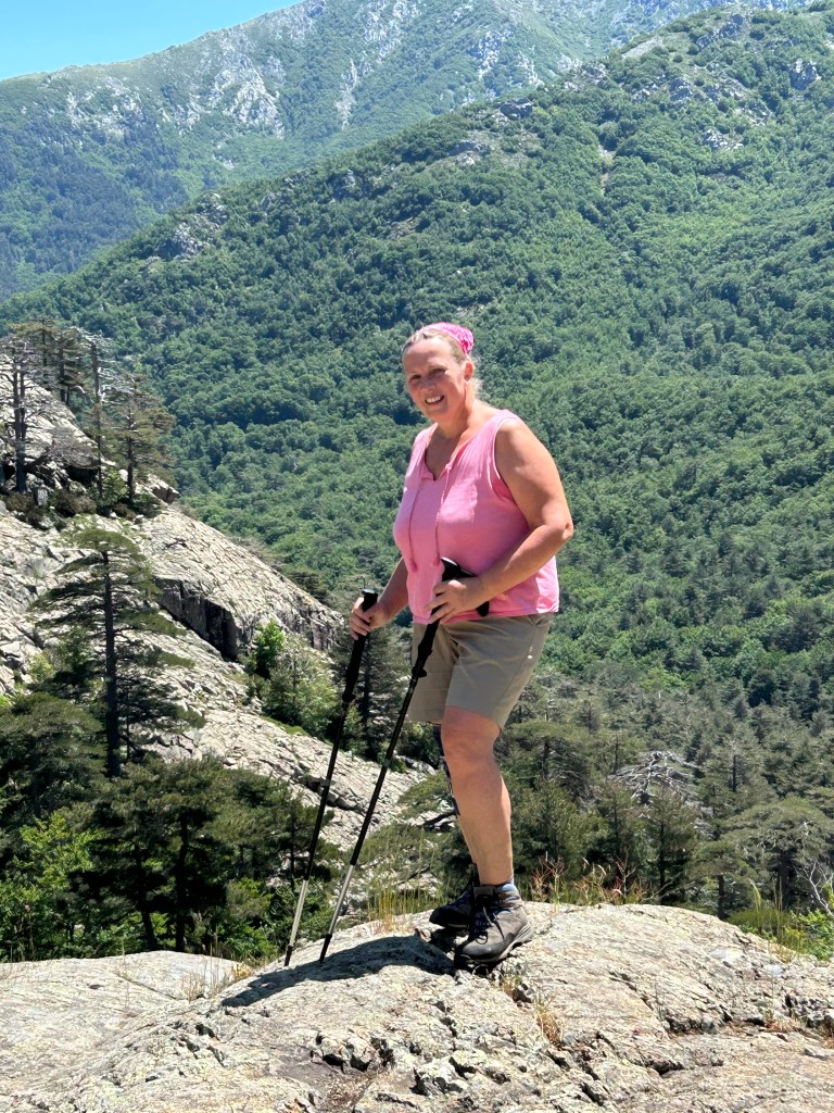 Op ons programma voor Vizzavona staat een inloopwandeling. Die is al behoorlijk pittig, met een dozijn kilometers en ongeveer 550 hoogtemeters. De wandeling begint vrij makkelijk, over de zuidelijke GR20 met brede paden langs heerlijke bossen. Achter een omgevallen boom vervul ik een dringende behoefte. We kruisen wandelaars die vanuit het verre Conca via E Capanelle op de GR20-Zuid het pad richting Vizzavona volgen. Marianne heeft een tocht uitgestippeld die deels langs de GR20-Z