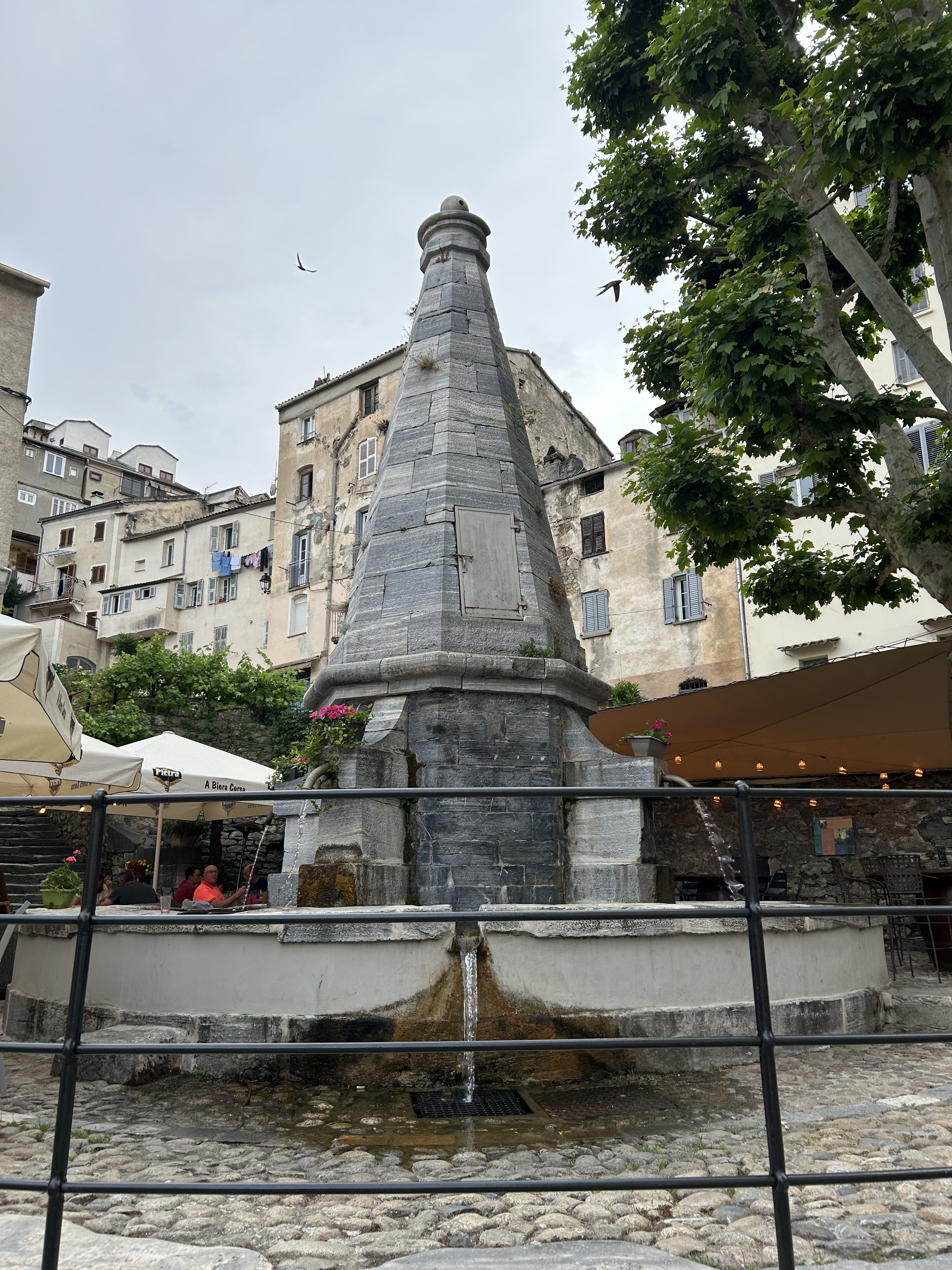 Restaurant A Funtana, aan de fontein, stond op nummer 1 van de 73 restaurants in Corte, zoals de baas ons verschillende keren verzekerde (met een quotering van 4,7 op 5 bij 1.129 beoordelingen). Bij elk tafeltje dat bezet geraakt, neemt de man een glazen waterkruik van het zuiverste fris water uit de fontein en zet die op je tafel. We hebben er inderdaad heerlijk gegeten.
