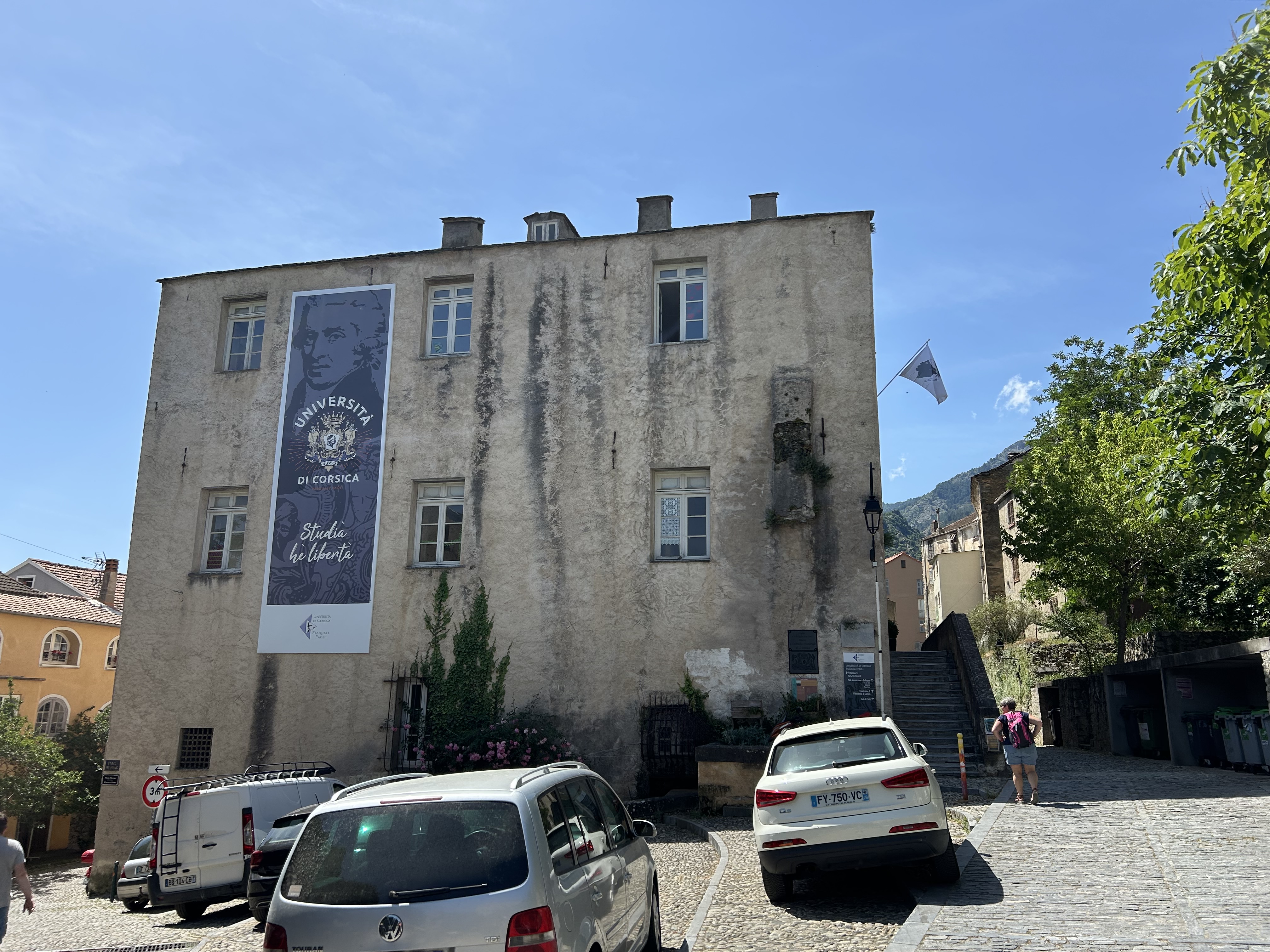 Onderweg zien we de Campus Mariani liggen van de Université de Corse Pascoli Paolo. De Universiteit van Corsica werd in 1765 opgericht door generaal Pasquale Paoli. Maar na vier jaar werd ze alweer gesloten. Frankrijk vond het toen niet nodig om in Corsica universitair onderwijs te organiseren. Op de website van de universiteit lees ik wat meer over de geschiedenis van Corte en Corsica. Lange jaren leek het erop dat die sluiting definitief was.