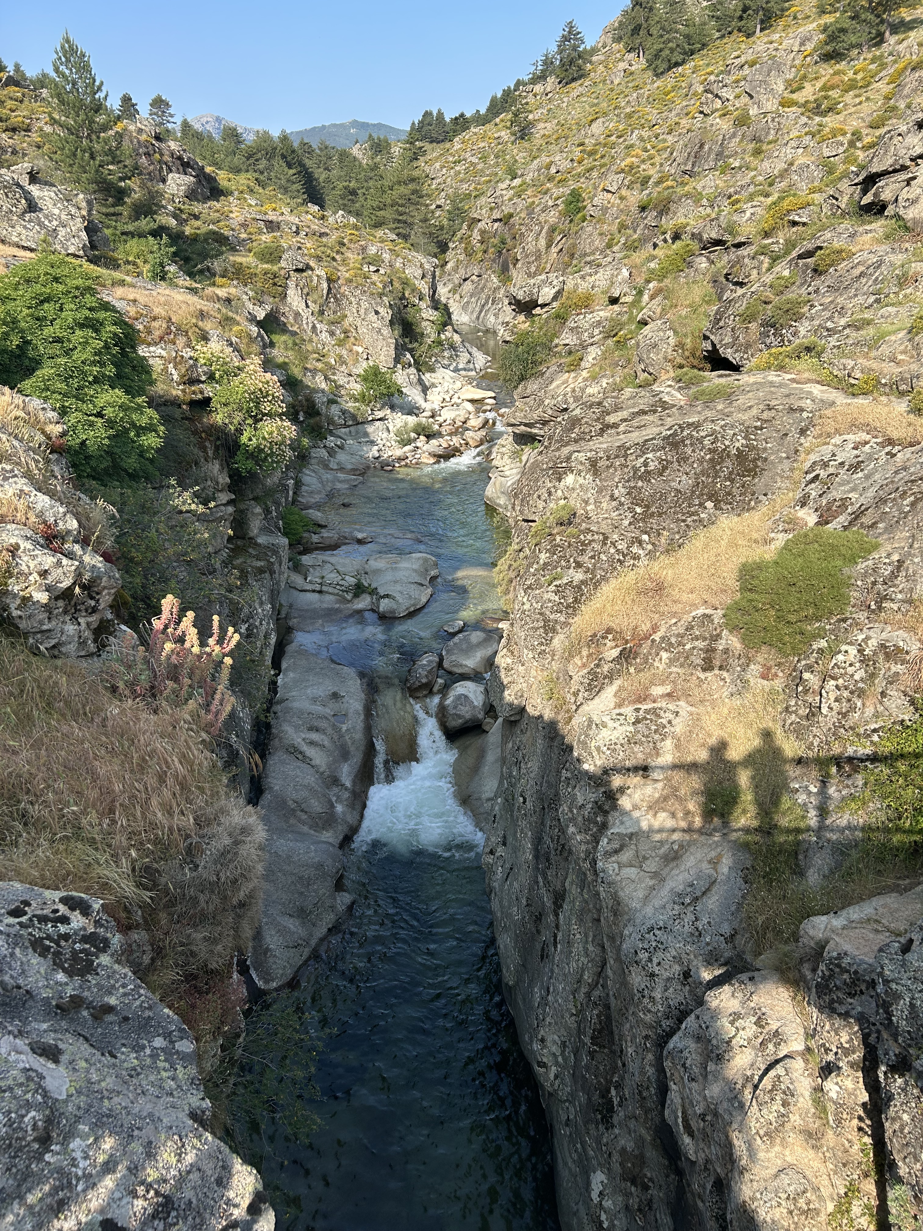 Uiteindelijk keren we toch maar terug op onze stappen. De sfeer tussen ons beiden is onderkoeld. Marianne was zo graag aan die poelen onder de waterval boven de Bergerie van Radule geraakt. Maar om het GR20-pad naar daar verder omhoog te klauteren, zie ik nu ook niet meer zitten. Aan de Bergerie drinken we nog iets en dalen daarna weer af richting Castel di Verghio.
