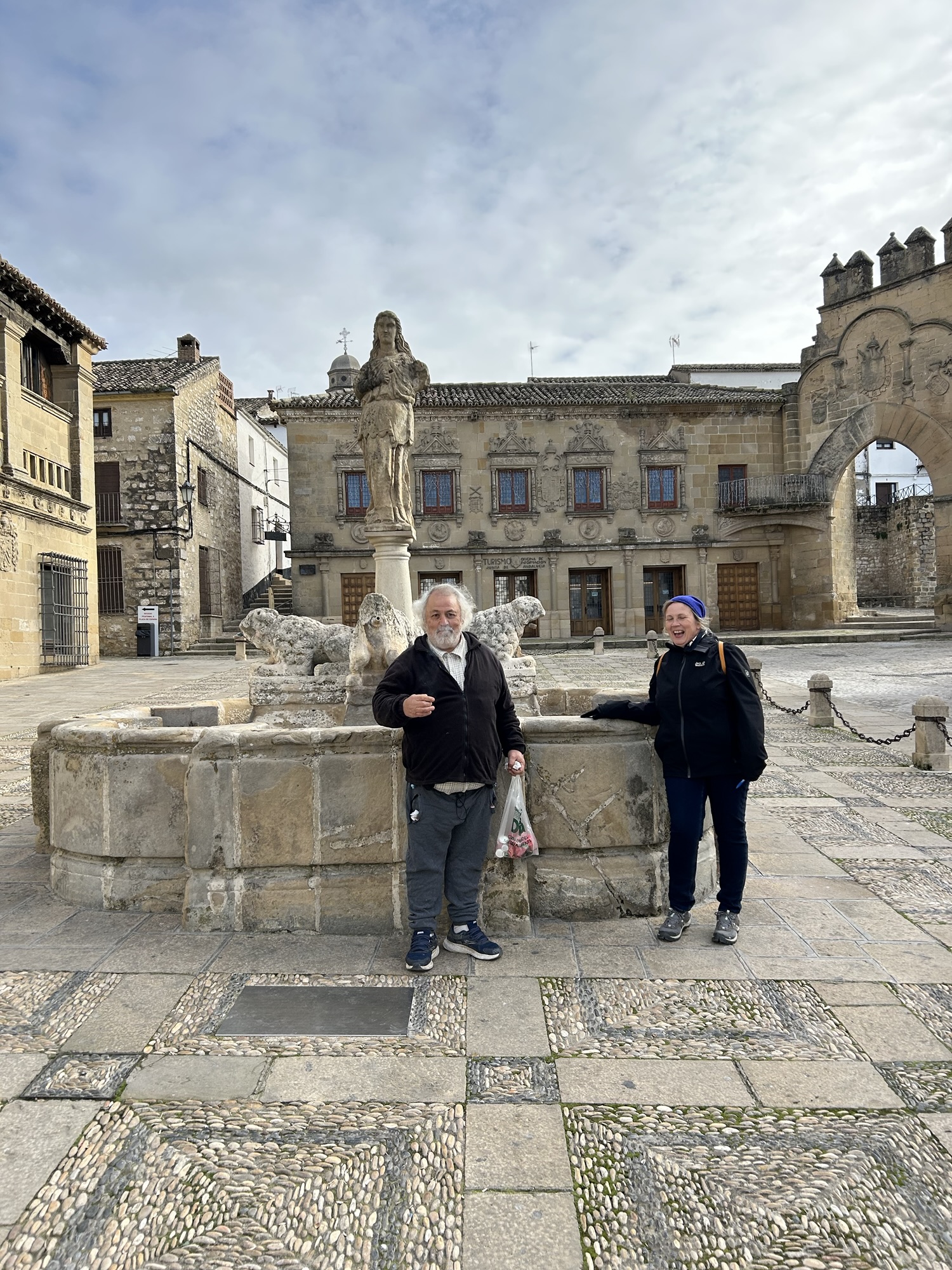We nemen nog een heerlijk bad en trekken er dan op uit naar het stadscentrum. Helaas zijn werklieden het centrale plein van Baeza opnieuw aan het plaveien. Er staan hekkens met doeken rond, die het nieuwe uitzicht geheim proberen te houden. We kunnen wel nog flaneren langs de cafeetjes, restaurants en winkeltjes en passeren prachtige renaissancegebouwen, een kathedraal en enkele kerken.