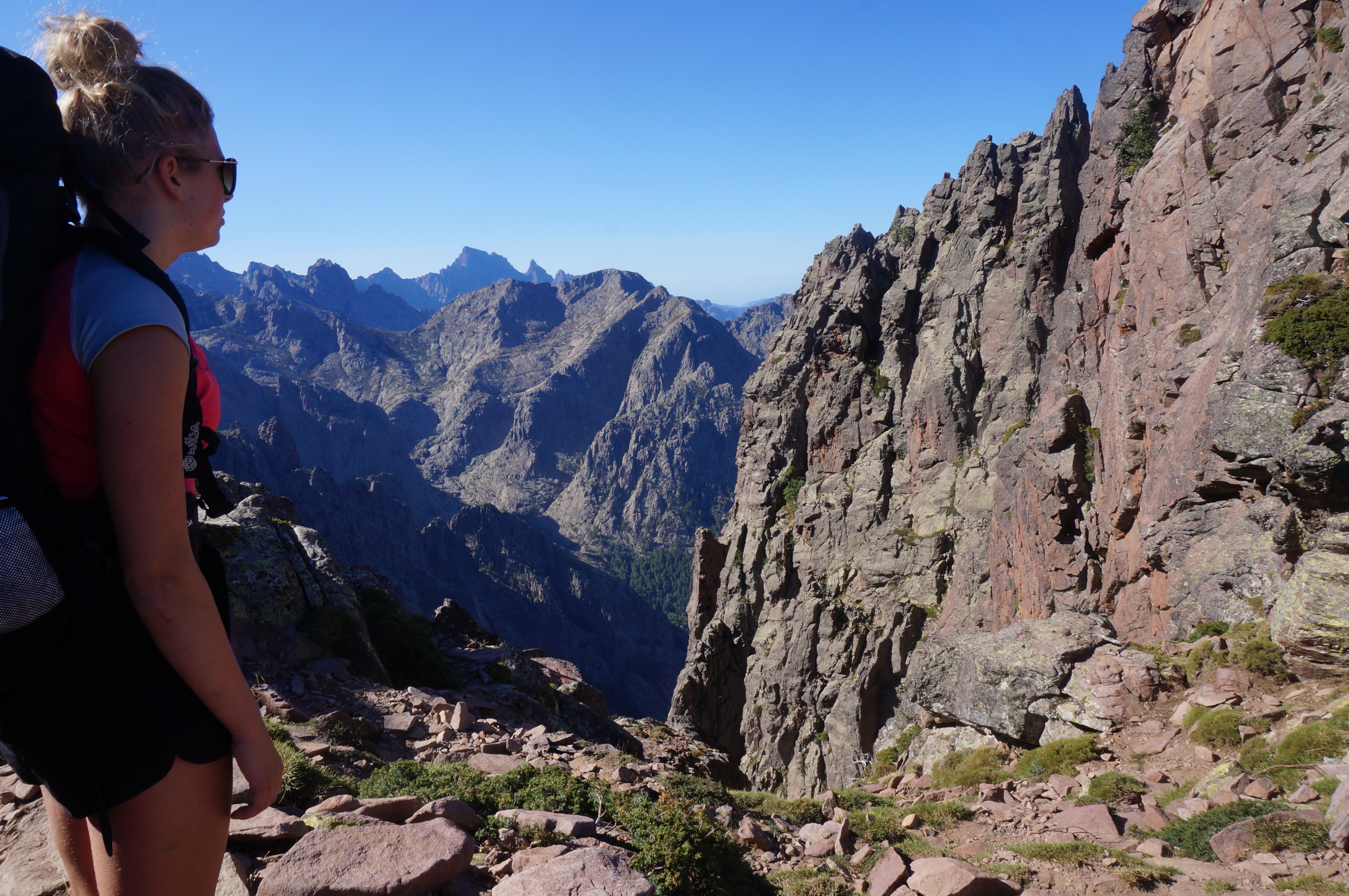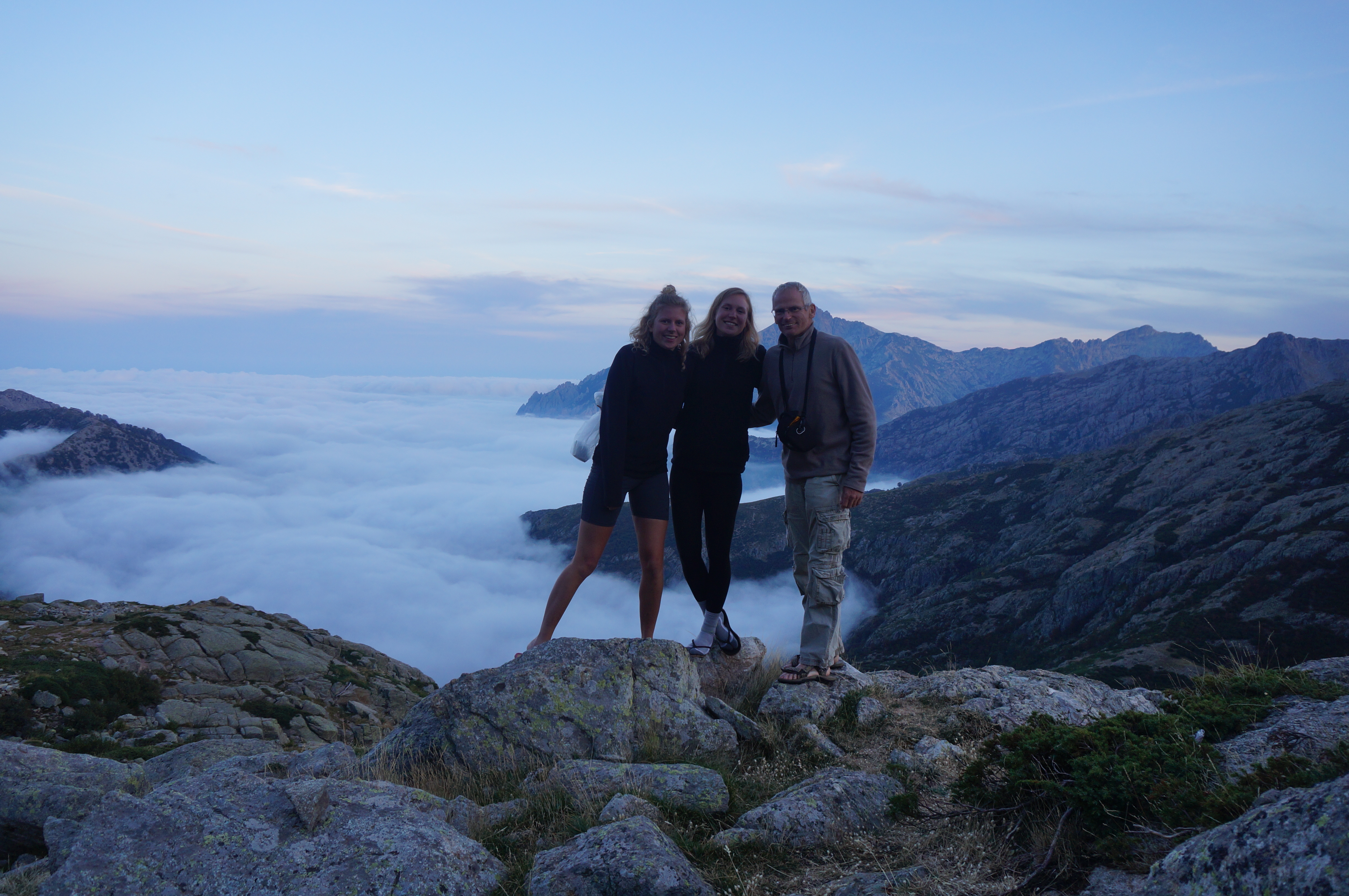 Op zondagochtend vroeg begint het avontuur met een ontbijt in het duister van ons hotelterrasje in Calenzana. De eerste dag is loodzwaar met een klim van bijna 1.400 meter. Winke overwint haar hoogtevrees op enkele lastige klauterpartijen tegen een bijna loodrechte rotswand.
